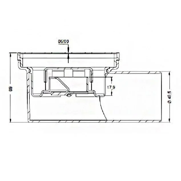 Решетка толщина 0,8 мм, нержавеющая сталь AISI 304 Горловина трапа пластик Комбинированный затвор, Корпус PP Горизонтальный выпуск D50, монтаж 360°