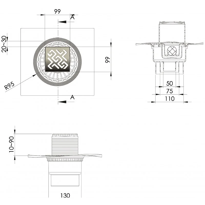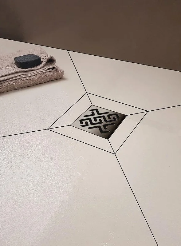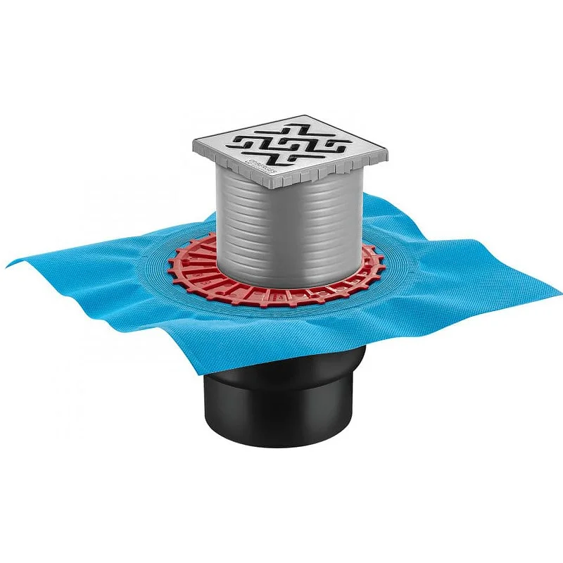 Душевой трап BERGES ZENTRUM Antik 100х100, матовый хром, выпуск D50/75/110 H74 вертикальный