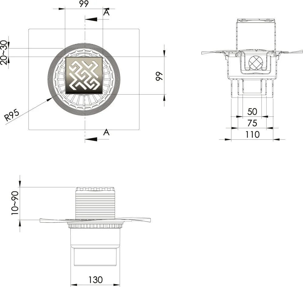 вертикальный выпуск D50/75/110, монтаж 360°