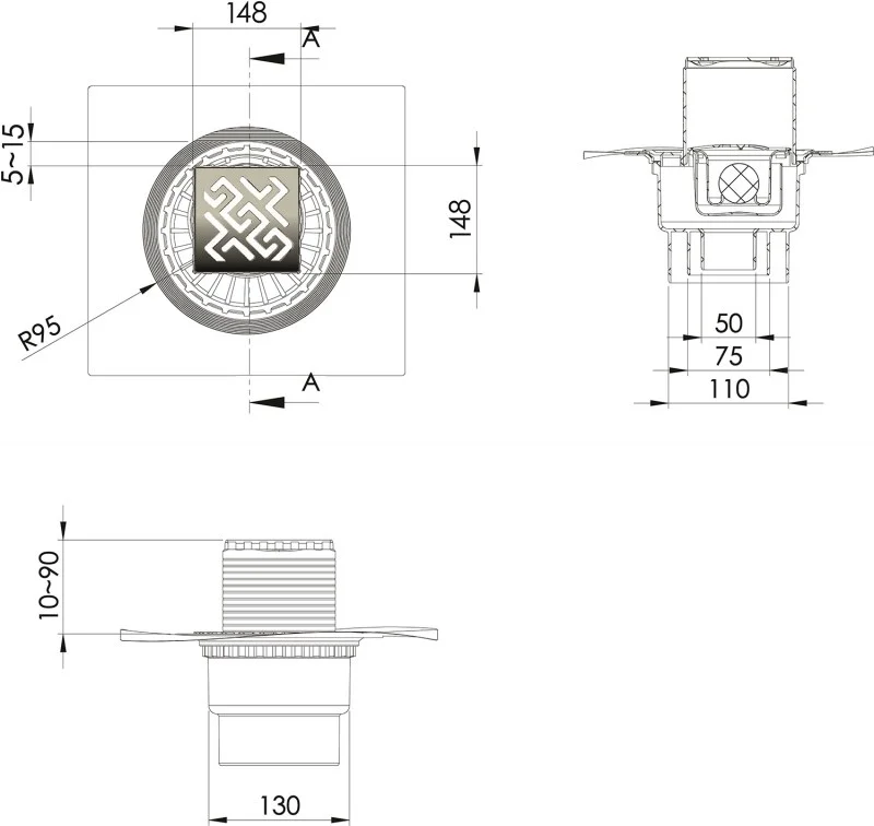 вертикальный выпуск D50/75/110, монтаж 360°
