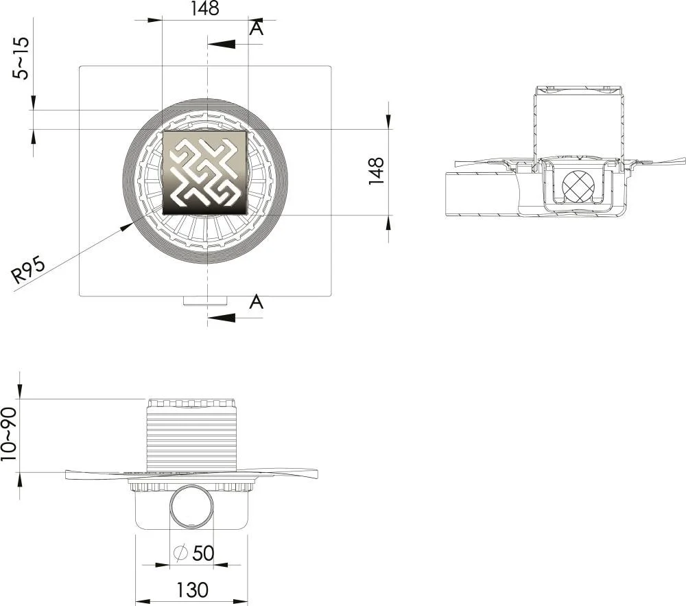 горизонтальный выпуск D50 H65, монтаж 360°