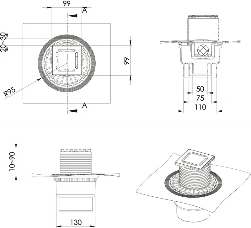 вертикальный выпуск D50/75/110, монтаж 360°