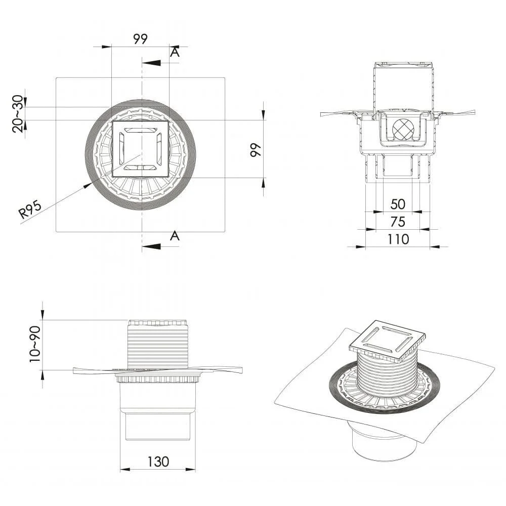 вертикальный выпуск D50/75/110, монтаж 360°