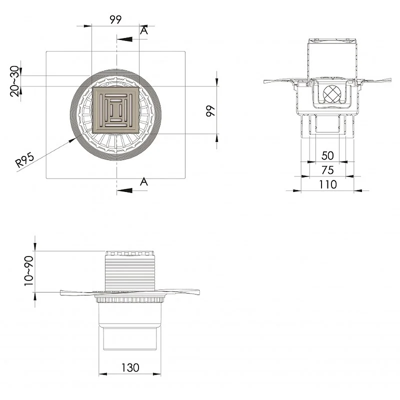 вертикальный выпуск D50/75/110, монтаж 360°