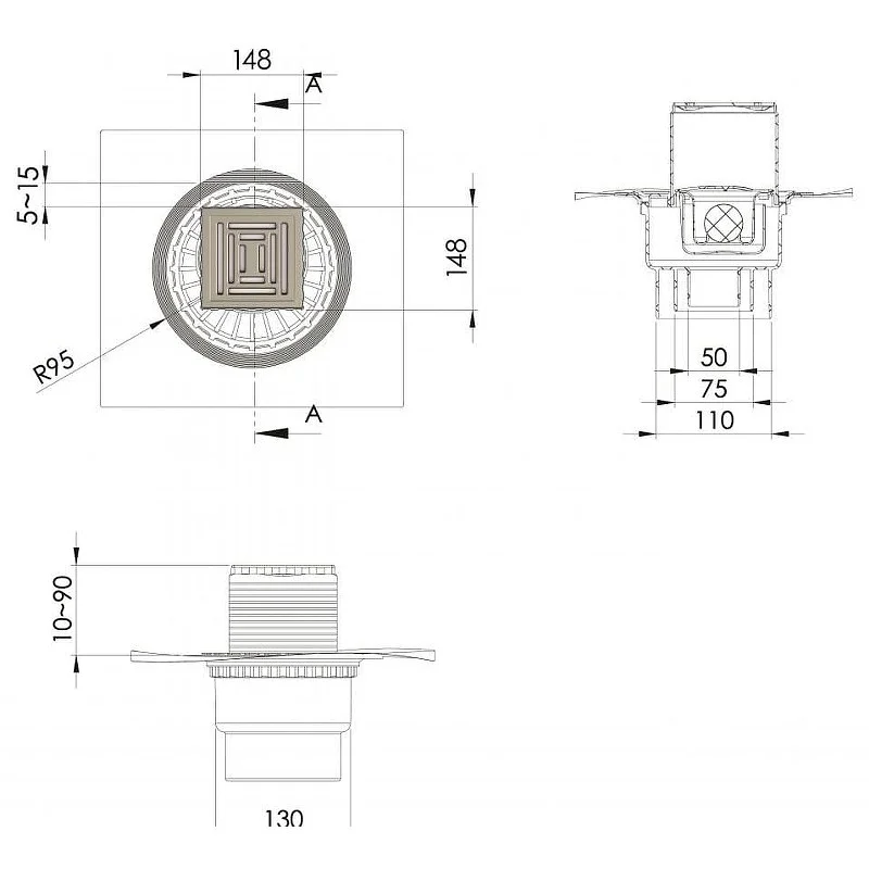 вертикальный выпуск D50/75/110, монтаж 360°