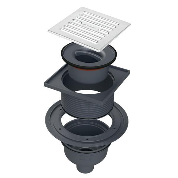 Трап для душа с комбинированным затвором предназначен для отвода воды с пола, для душевой кабины, организации слива для душа. Корпус точечного душевого трапа сделан из полипропилена, который не подвержен химическому воздействию, а также не поддается коррозии.