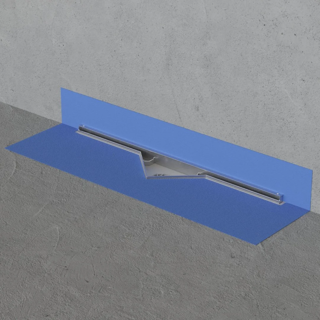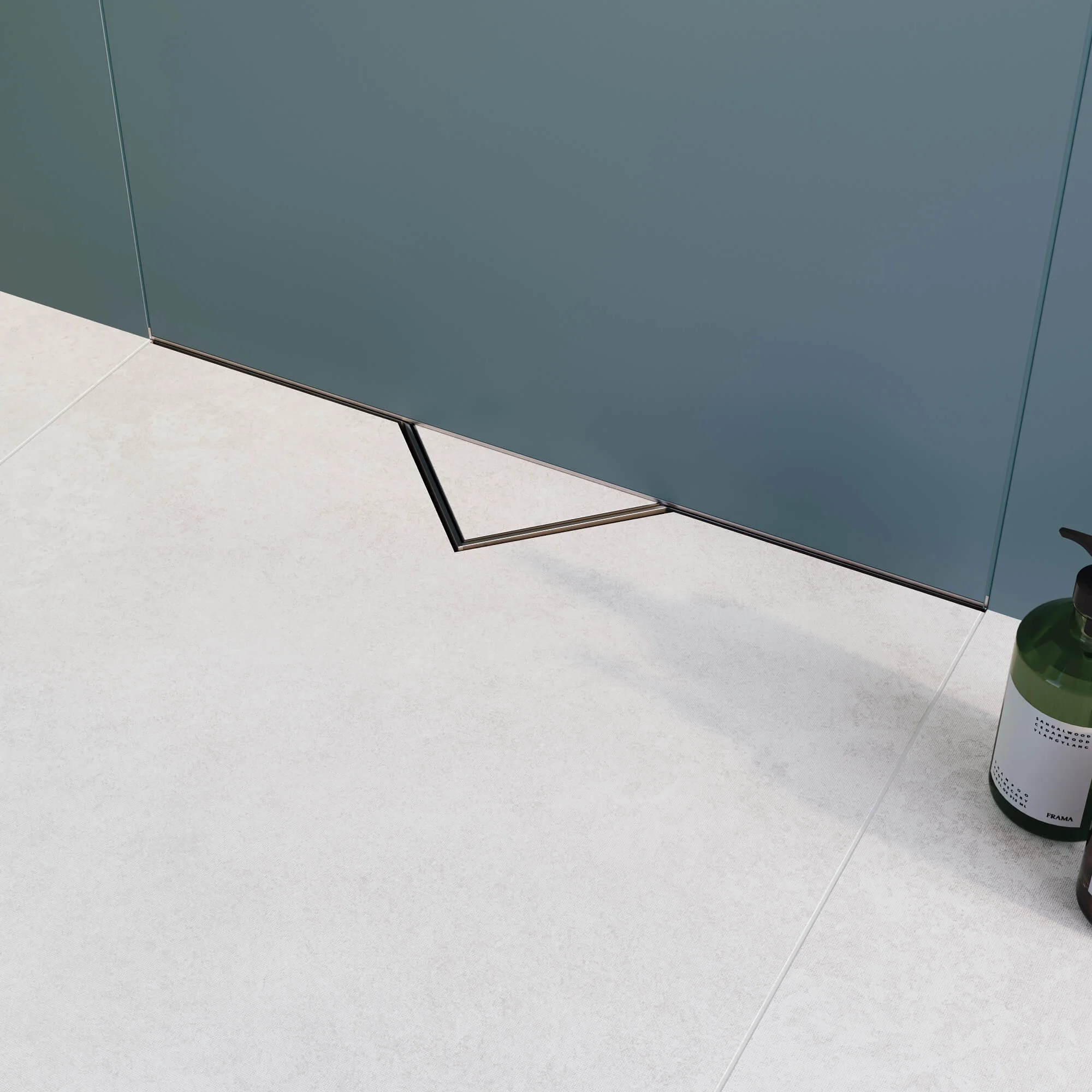 Визуально скрытый дренаж с треугольной крышкой из нержавеющей стали, позволяющей вложить плитку и воплотить дизайн-концепцию в стиле "минимализм";