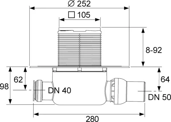 • Уровень гидрозатвора = 50 мм согласно DIN EN 1253