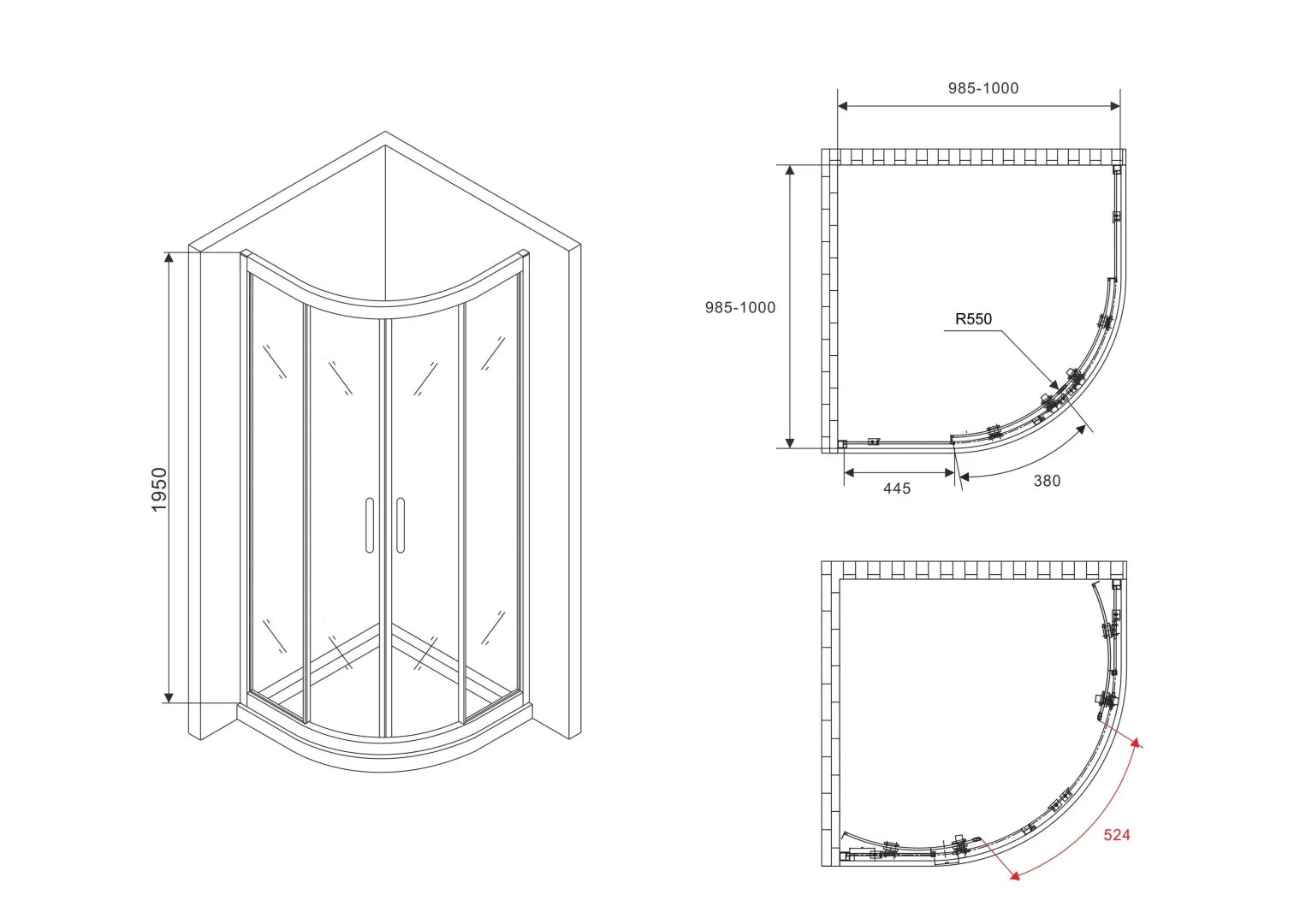 Душевой уголок ABBER Schwarzer Diamant AG01100