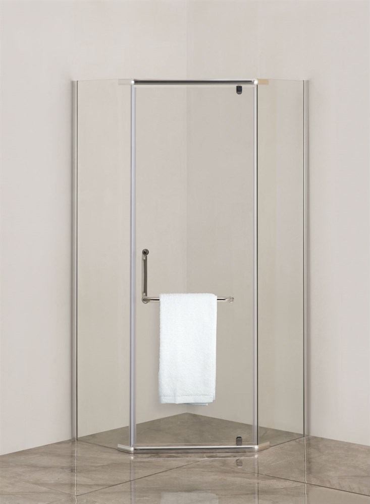 Организовать душевую зону стало легко благодаря душевому уголку Agger A03-090TCR/G. Монтаж возможен как на поддон (арт.A03-090TCR/T - приобретается дополнительно), так и напольный. Размер уголка подойдет для большинства небольших ванных комнат и составляет 86х86х195 см при стандартной форме "четверть круга". Распашная дверь (правосторонняя) с силиконовыми уплотнителями и магнитной лентой, стекла прозрачные закаленные толщиной 6 мм, алюминиевый профиль с покрытием хром. С внешней стороны двери - держатель для полотенца. Ширина входа - 61,8 см.