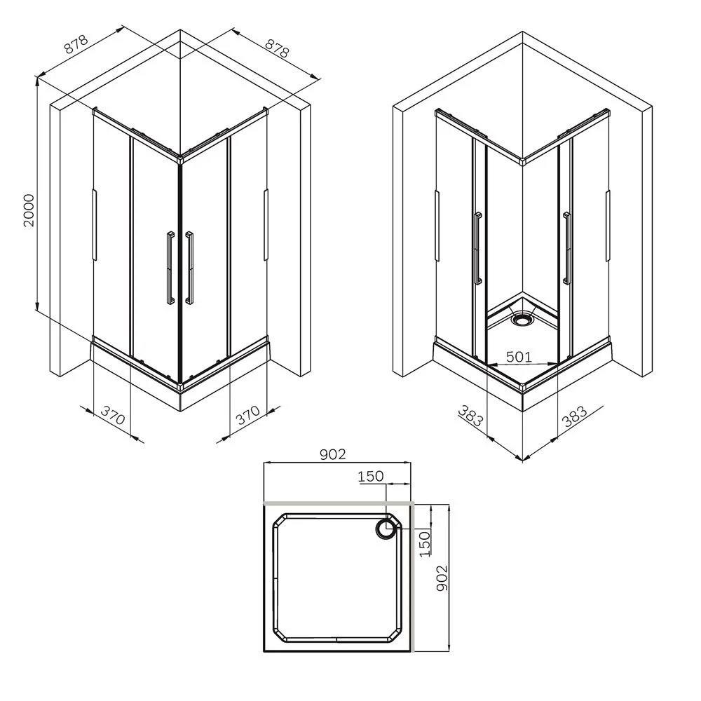 Душевой уголок AM.PM Func W84G-403-9090-MT Slide 90х90, хром матовый, стекло прозрачное