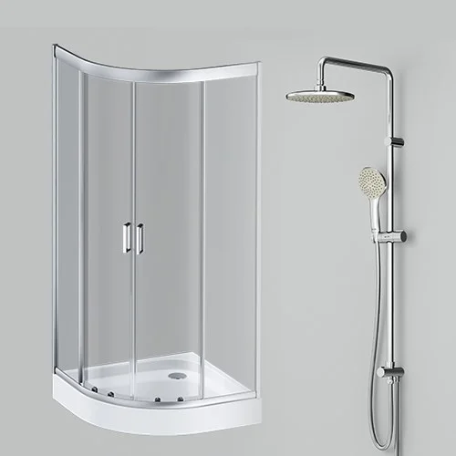 В комплект входит: стекла для душевого ограждения, поддон из акрила и душевая система ShowerSpot.