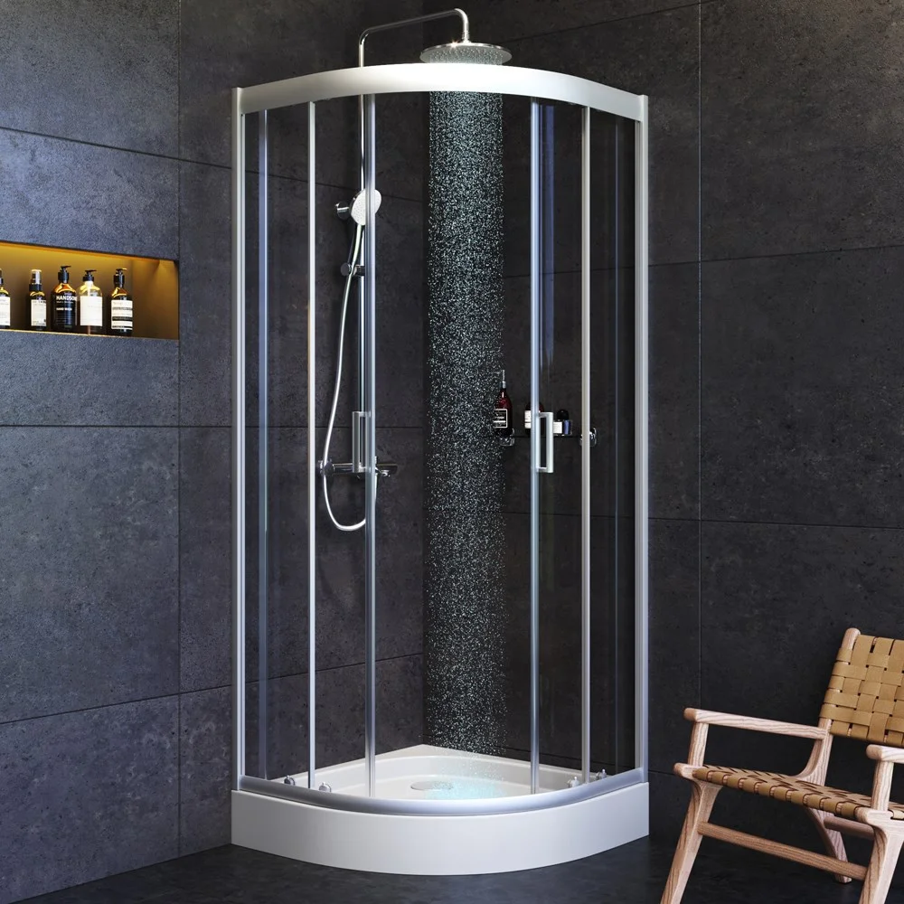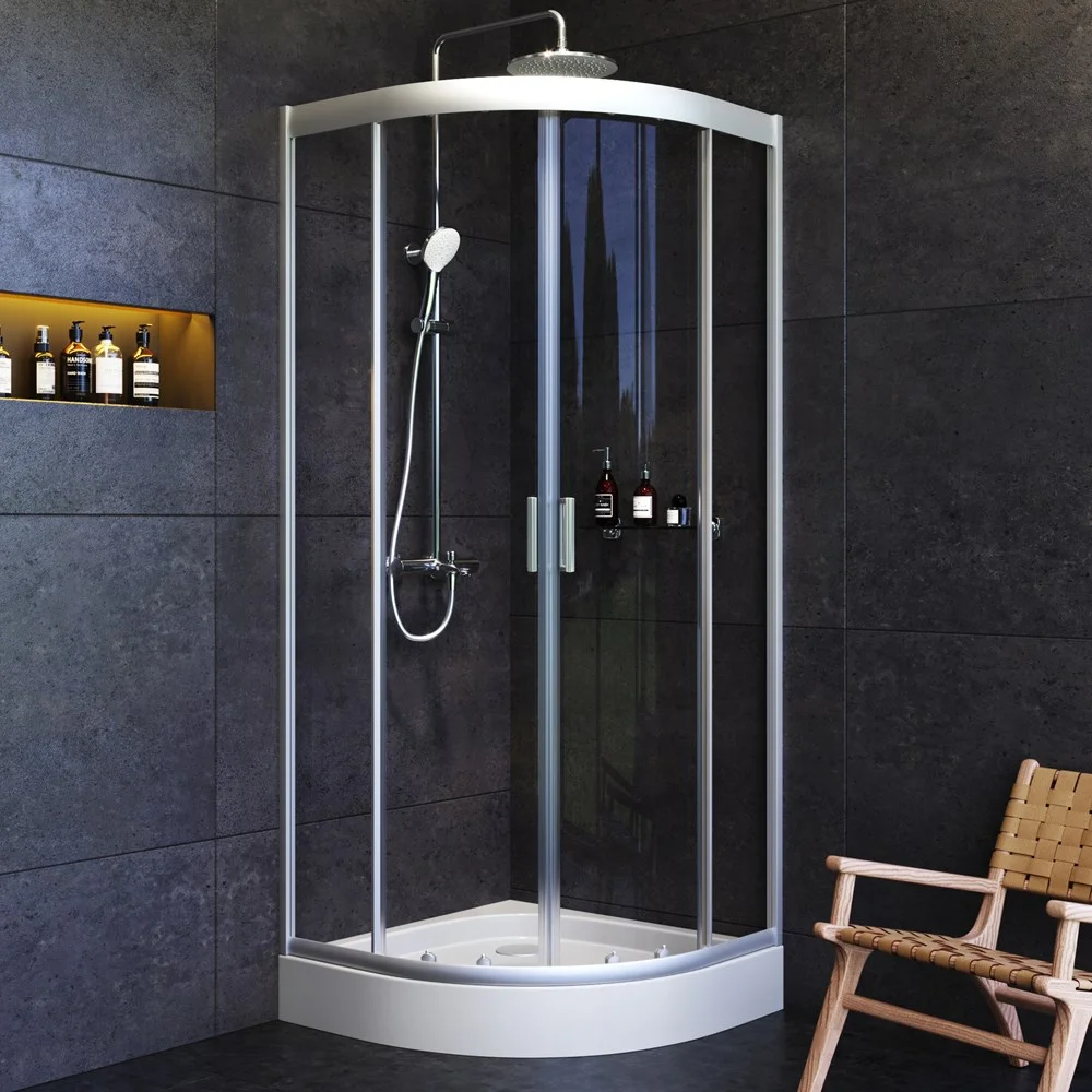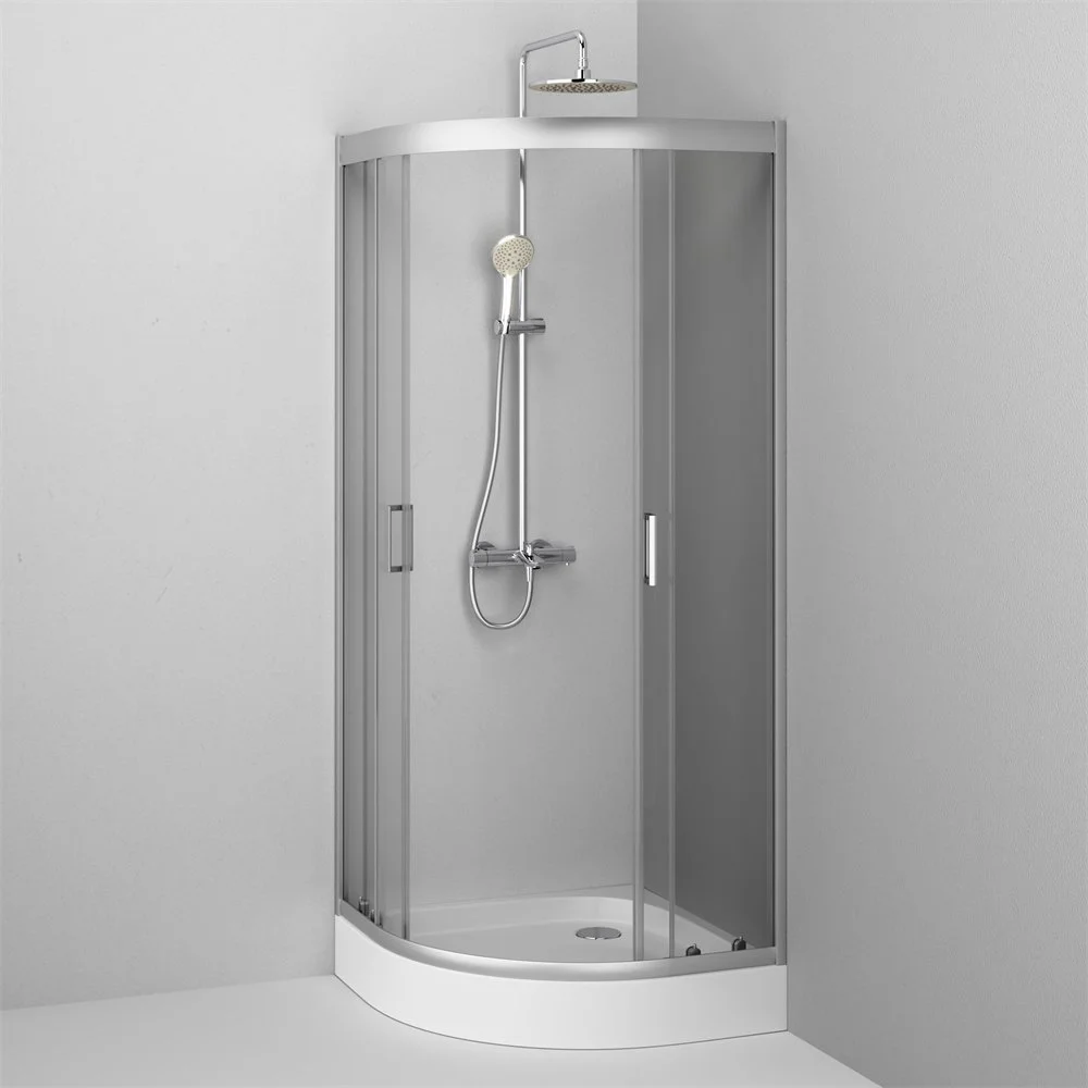 Система крепления профилей QuickFix - простой и быстрый монтаж душевого ограждения. Надежные хромированные двойные ролики – не менее 150 000 открываний. Прозрачное закаленное стекло толщиной 5 мм. Ручка из алюминия. Высота ограждения без поддона 1900 мм.