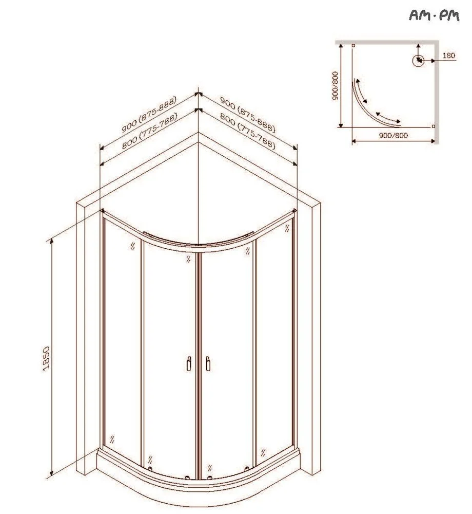 Двери душевой кабины оснащены матовыми пластиковыми ручками чтобы уменьшить появление отпечатков пальцев на поверхности. В комплект входит акриловый поддон с идеально гладкой поверхностью. Поддон оборудован съемным экраном что позволит с легкостью обслуживать сифон и проводить проверку пространства под поддоном ""