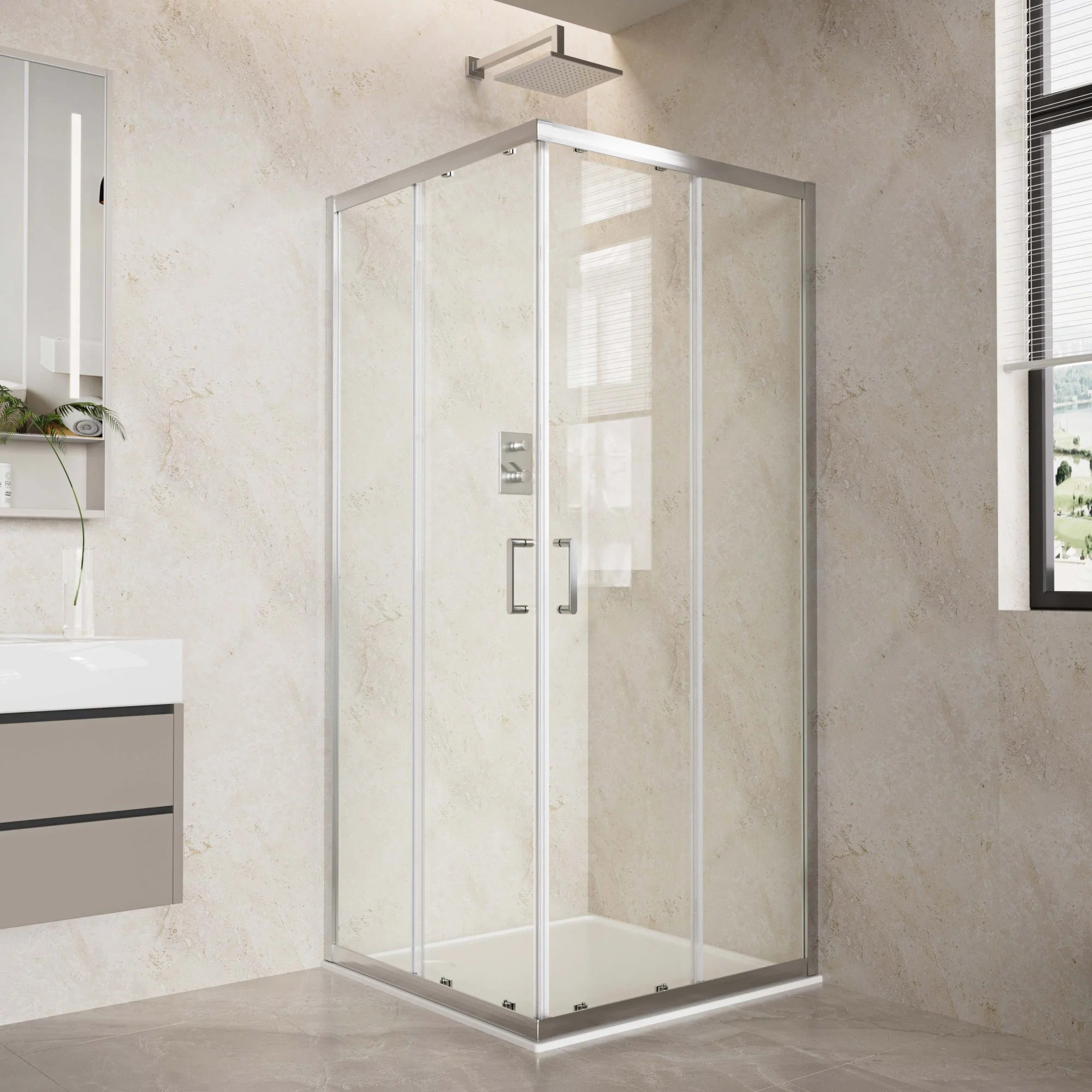 Свобода движения: Раздвижные двери — это решение проблемы тесноты. Заходите и выходите из душа, не задумываясь о том, куда откроется створка.