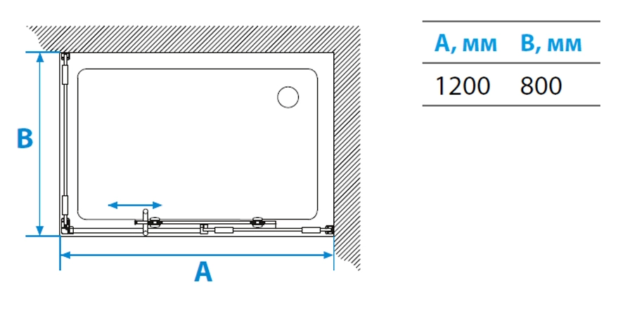 Душевое ограждение прямоугольной формы с раздвижной дверью на подвесных роликах без нижнего профиля. В правом исполнении. Ролики латунные, с подшипником и съемным механизмом. Уникальная модель с функцией безсаморезного монтажа. Бесцветное закаленное стекло, качество М1, толщина стенок 8 мм, толщина дверки 6 мм.