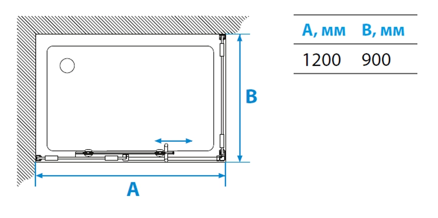 Душевое ограждение прямоугольной формы с раздвижной дверью на подвесных роликах без нижнего профиля. В левом исполнении. Ролики латунные, с подшипником и съемным механизмом. Уникальная модель с функцией безсаморезного монтажа. Бесцветное закаленное стекло, качество М1, толщина стенок 8 мм, толщина дверки 6 мм.