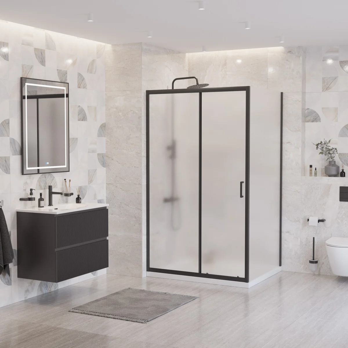 Душевой уголок BelBagno UNO-195-AH-1-120/90-P-NERO 120x90 см, профиль черный, стекло рифленое