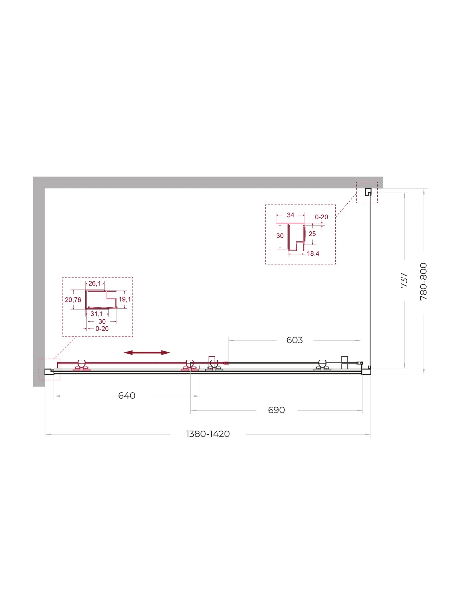 Душевой уголок BelBagno UNO-195-AH-1-140/80-C-NERO 140x80 см, профиль черный, стекло прозрачное