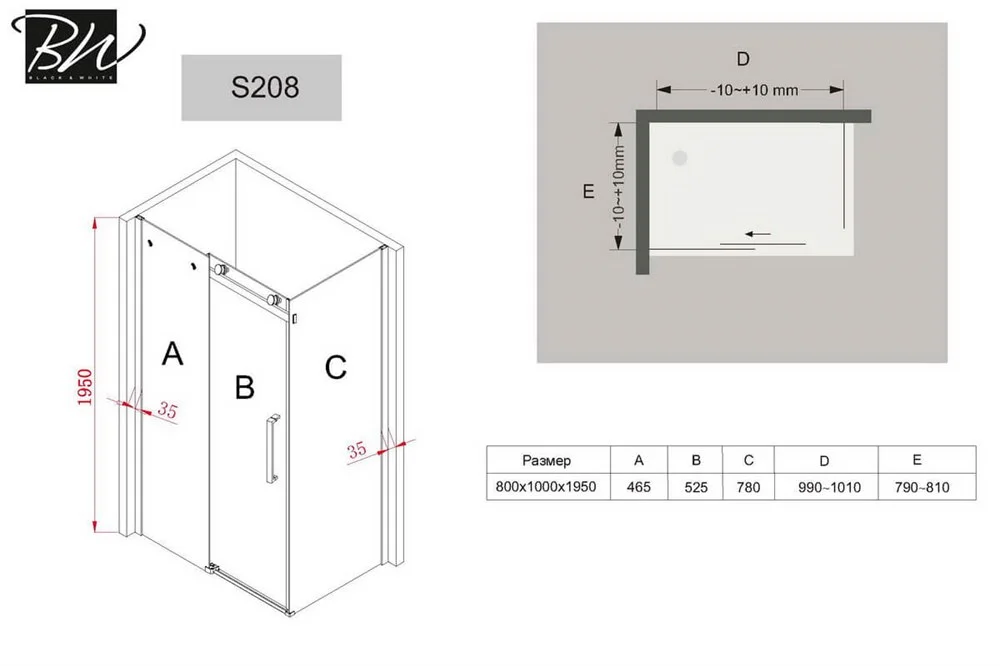 Душевой уголок Black&White Stellar Wind S208-80-100 2088010