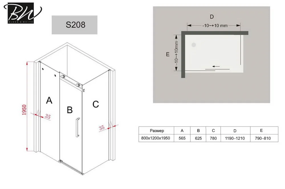 - Допуск на установку до 20 мм.;