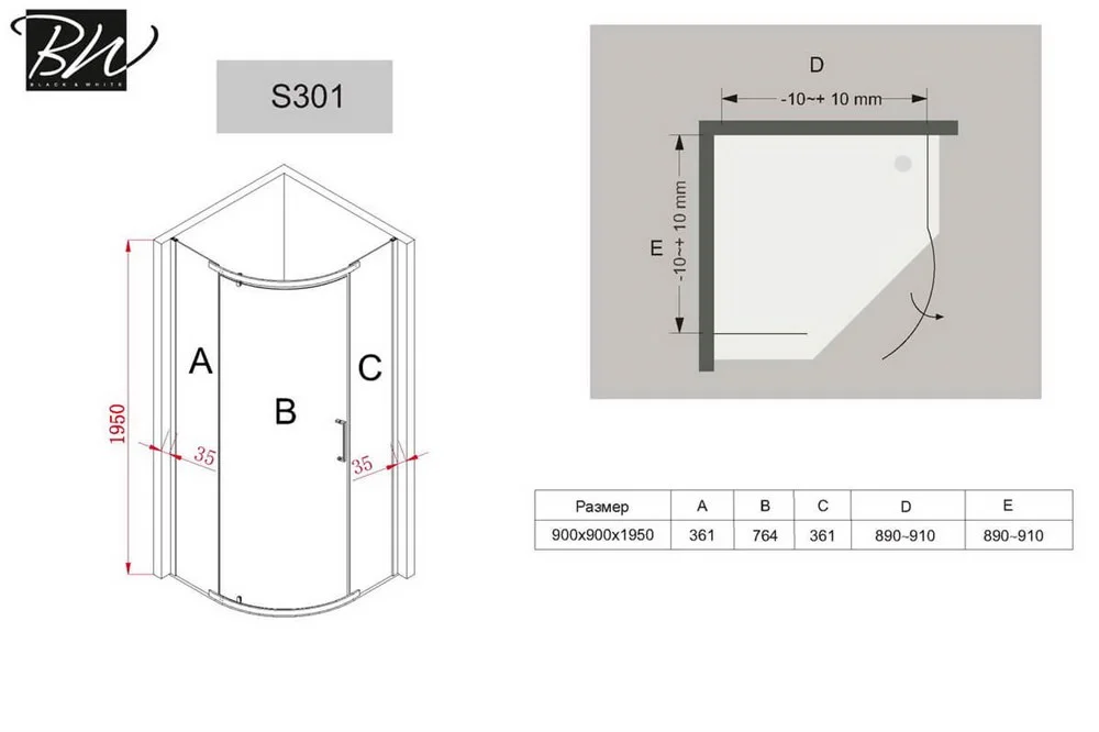 Душевой уголок Black&White Stellar Wind S301-900х900