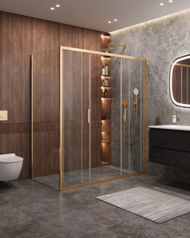 Душевой уголок CEZARES MOLVENO-AH-2/1-170/90-C-BORO-IV цвет профиля брашированное золото стекло прозрачное 1700x900 мм