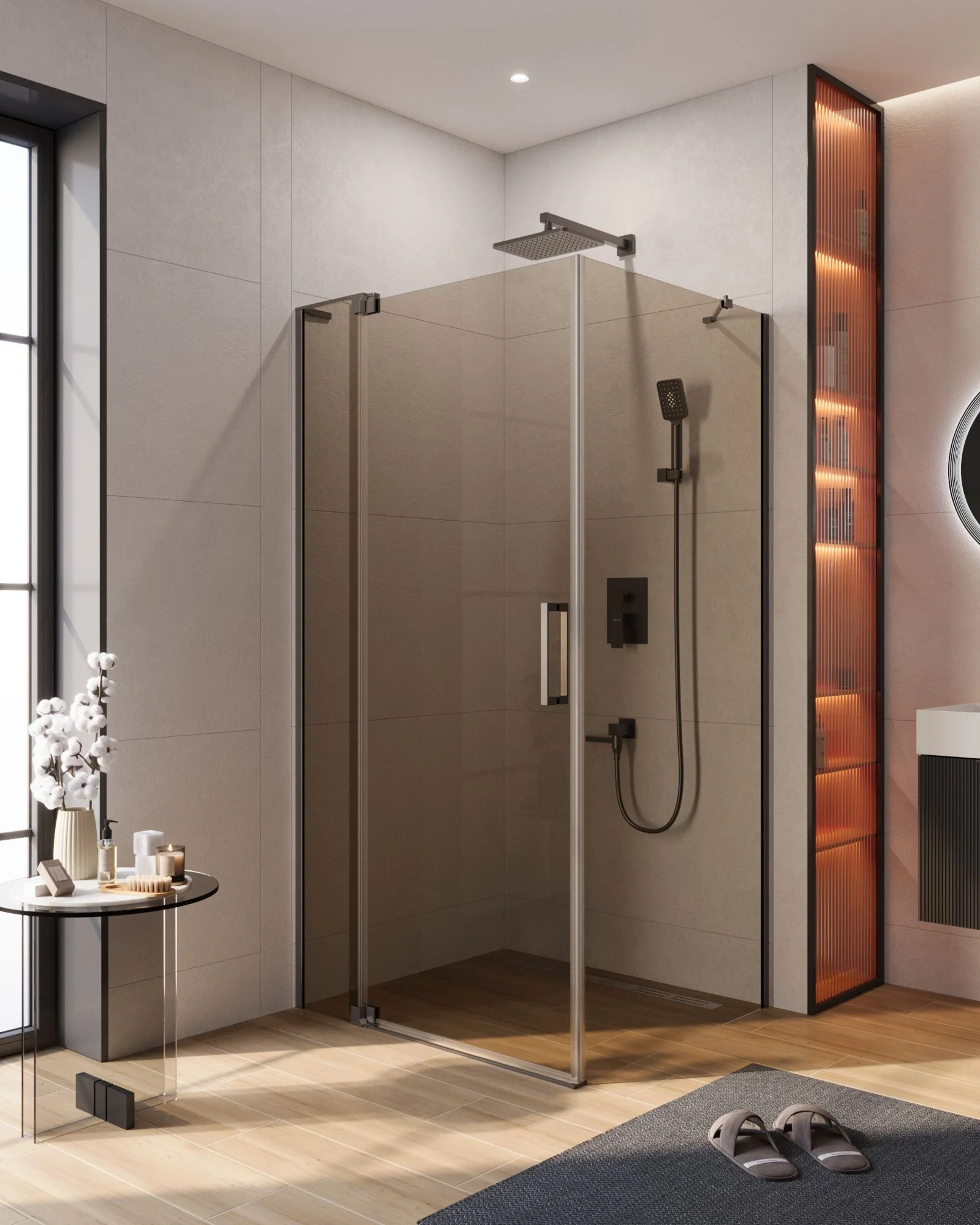 Душевой уголок CEZARES SLIDER-AH-1-100-90/100-BR-GM 90-100x100см стекло тонированное (бронза), профиль оружейная сталь