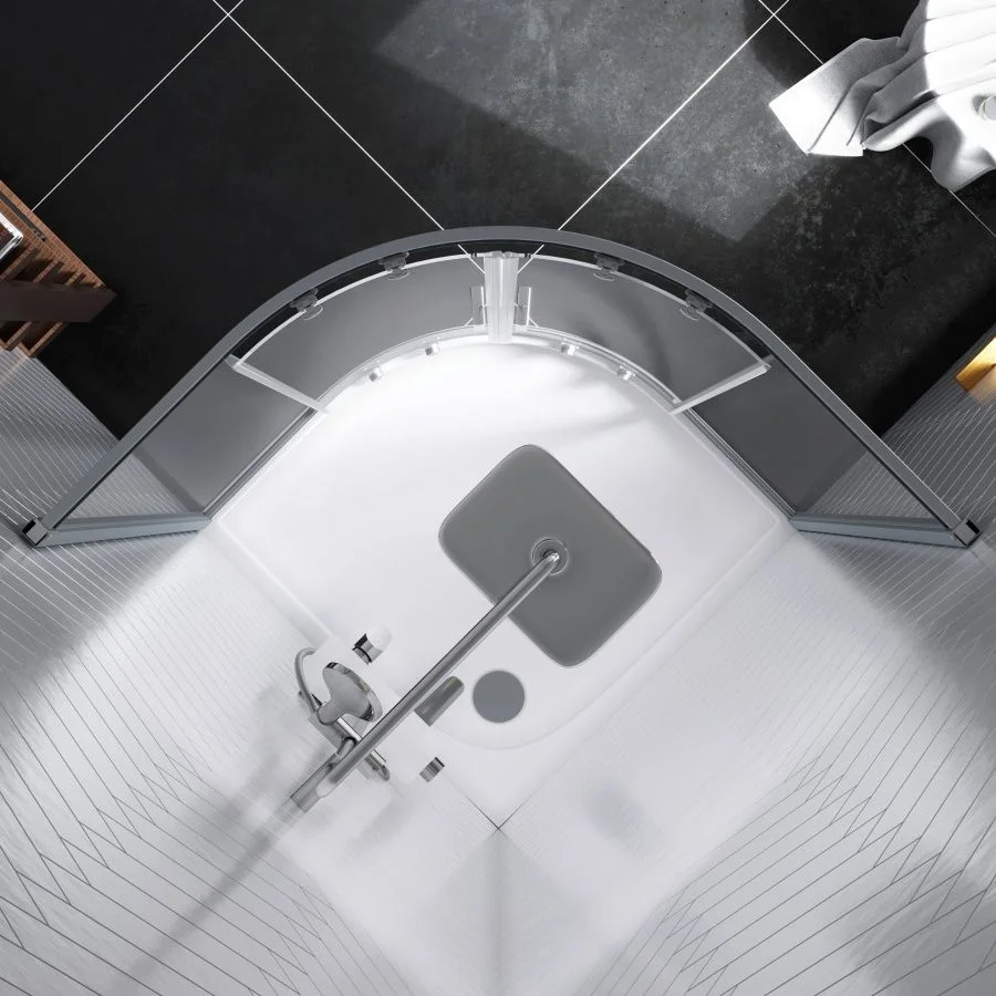 Высота 1900 мм широкая входная зона и вместительное внутреннее пространство комфортны для людей любой комплекции. Двери ограждения оснащены роликами для плавного и бесшумного хода. В закрытом виде створки герметично блокируют мокрую зону избавляя от необходимости уборки ванной комнаты после принятия душа. ""