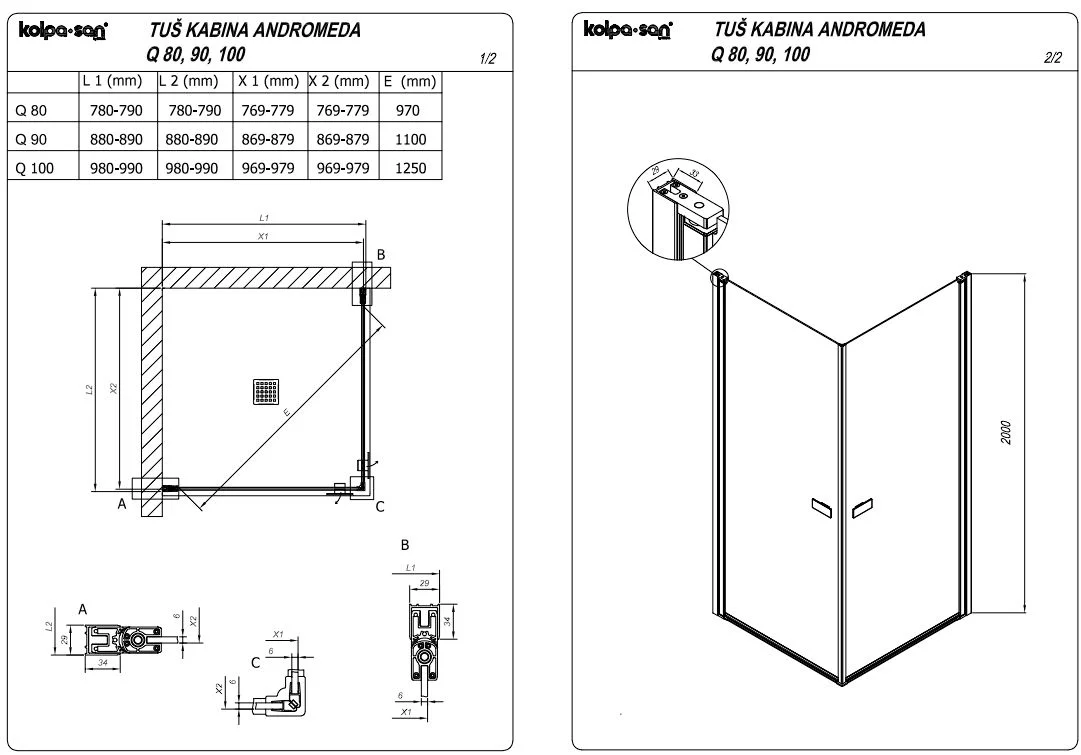 Душевой уголок Kolpa-San ANDROMEDA Q 100x100 профиль серебро, стекло прозрачное 516470