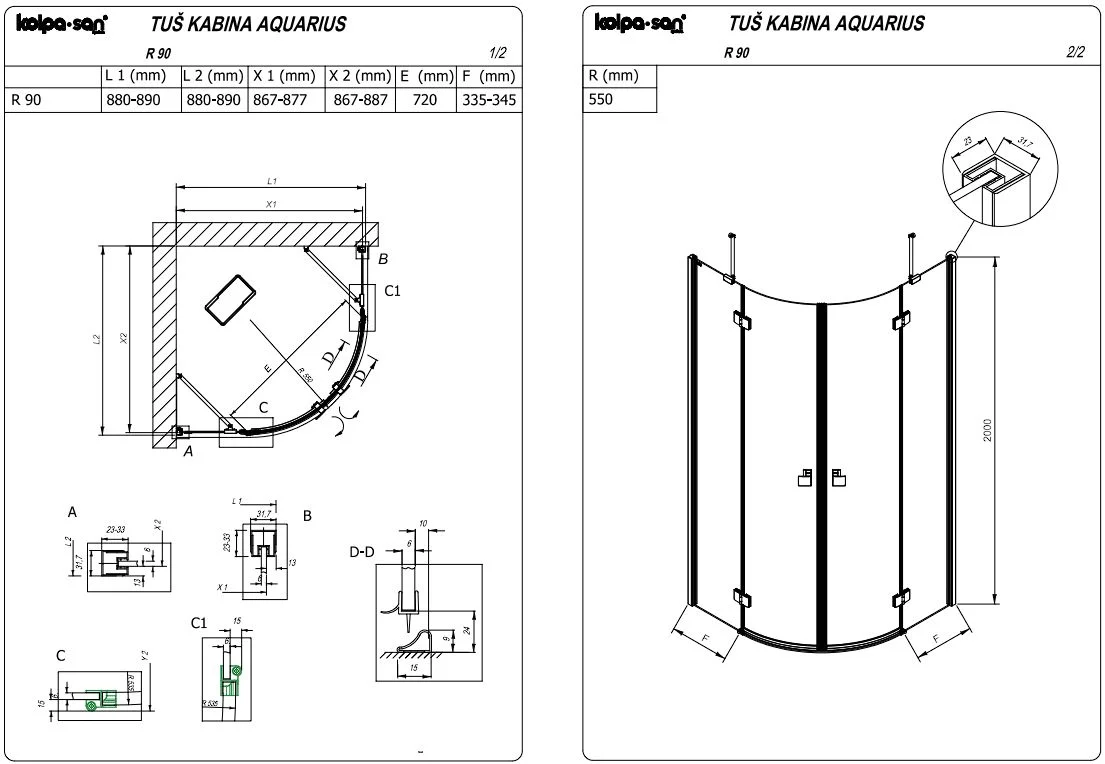 Душевой уголок Kolpa-San AQUARIUS R 90 профиль серебро, стекло прозрачное 518640