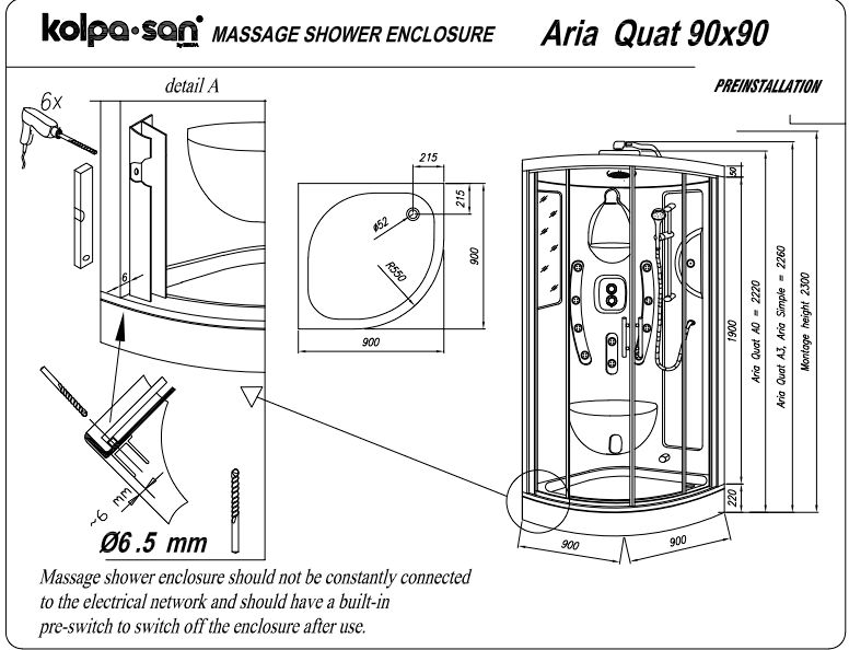 Душевой уголок Kolpa-San ARIA QUAT A0 90x90 профиль белый, стекло прозрачное 799040