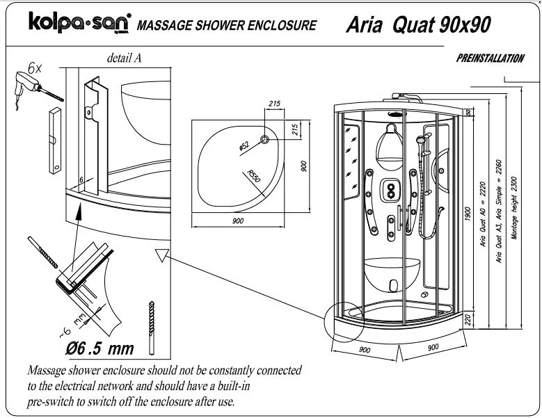 Душевой уголок Kolpa-San ARIA QUAT A3 90x90 профиль белый, стекло прозрачное 731830