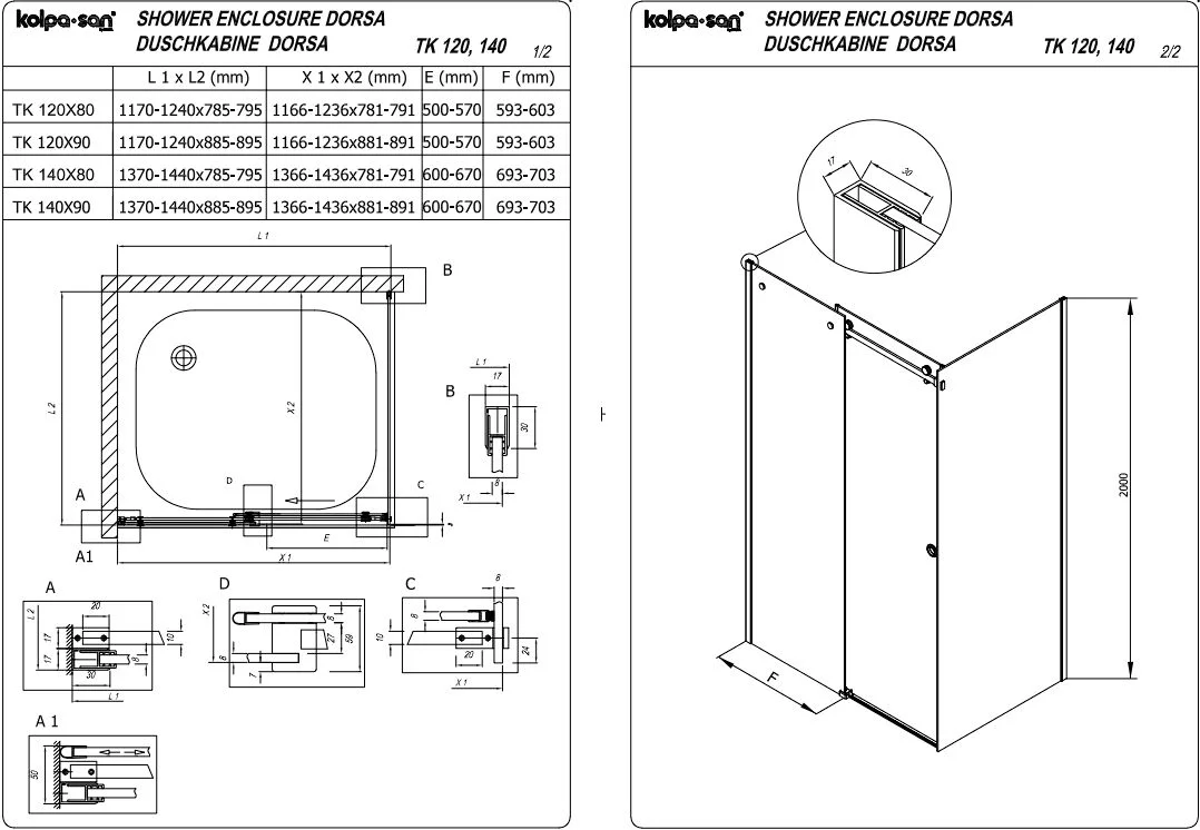 Душевой уголок Kolpa-San DORSA TK 120x80 профиль серебро, стекло прозрачное 513970