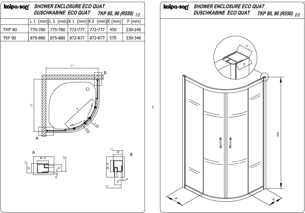 Душевой уголок Kolpa-San ECO QUAT TKP 90x90 UNI профиль хром, стекло прозрачное 538580