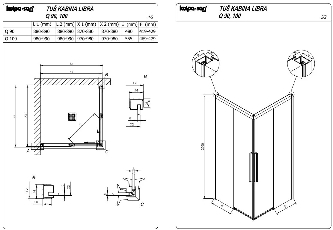 Душевой уголок Kolpa-San LIBRA Q 90 профиль черный, стекло прозрачное 516850