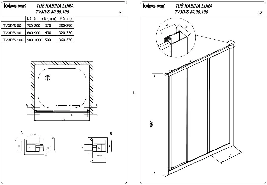 Душевой уголок Kolpa-San LUNA TV3D/S 100 UNI профиль серебро, стекло прозрачное 510670