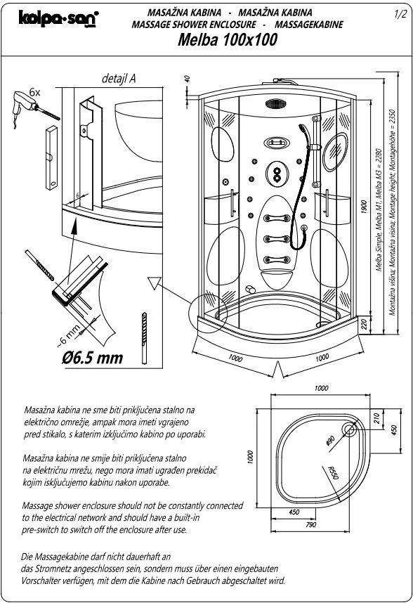 Душевой уголок Kolpa-San MELBA M3 100x100 профиль белый, стекло прозрачное 932580
