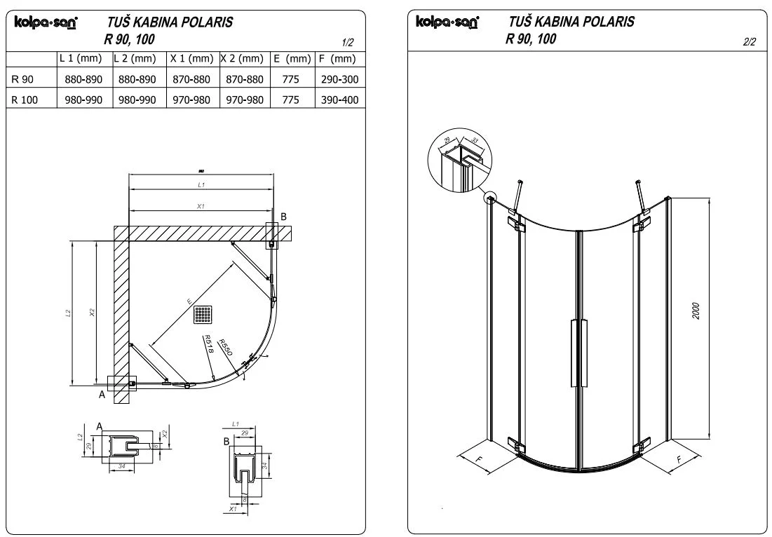 Душевой уголок Kolpa-San POLARIS R 90x90 профиль черный, стекло прозрачное 515390
