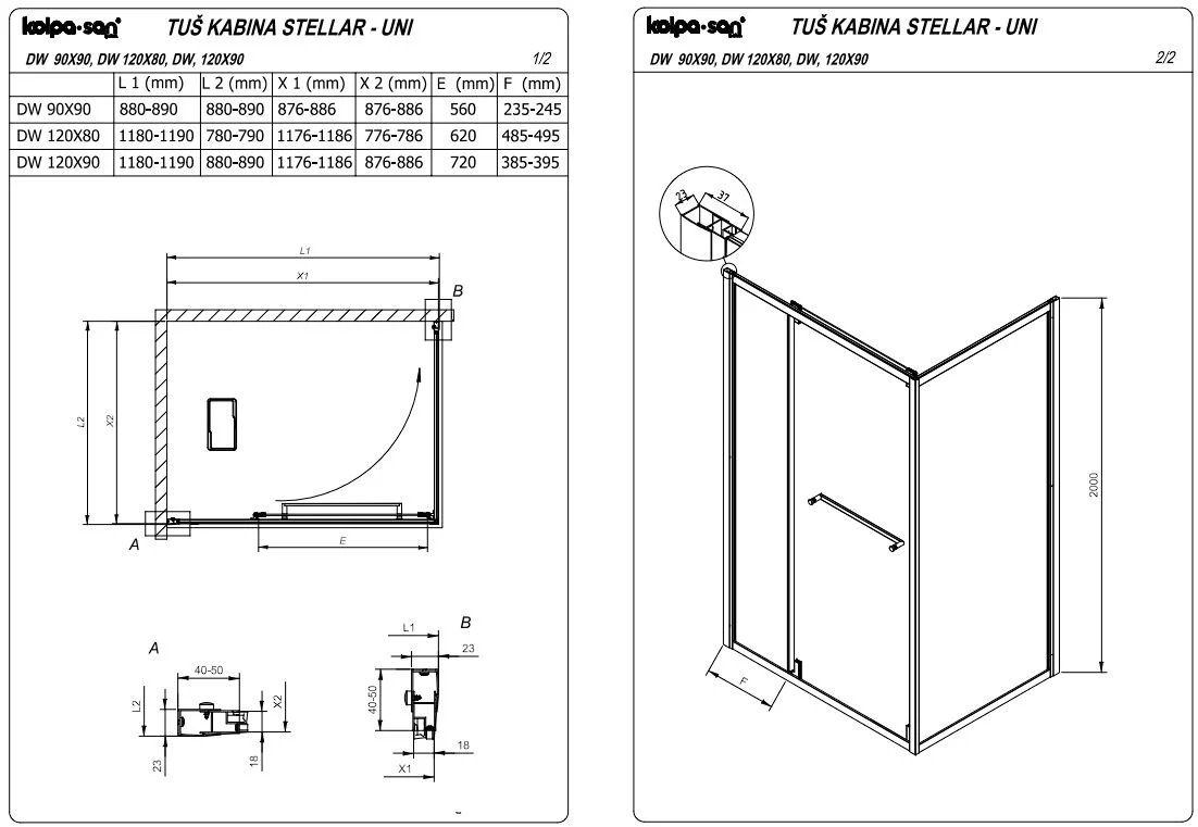 Душевой уголок Kolpa-San STELLAR UNI 120x90 профиль серебро, стекло прозрачное 518840