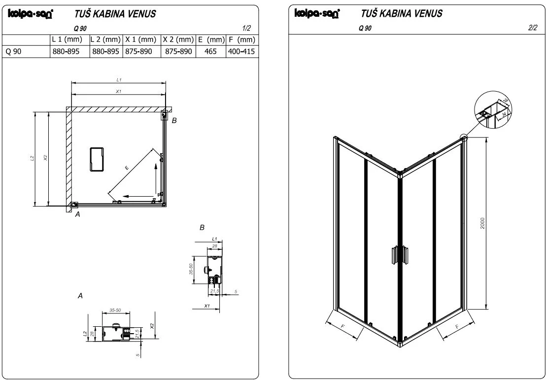 Душевой уголок Kolpa-San VENUS Q 90 профиль серебро, стекло шиншила 660250