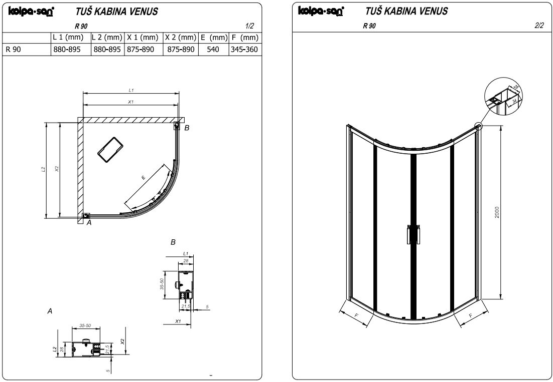 Душевой уголок Kolpa-San VENUS R 90 профиль серебро, стекло прозрачное 660270
