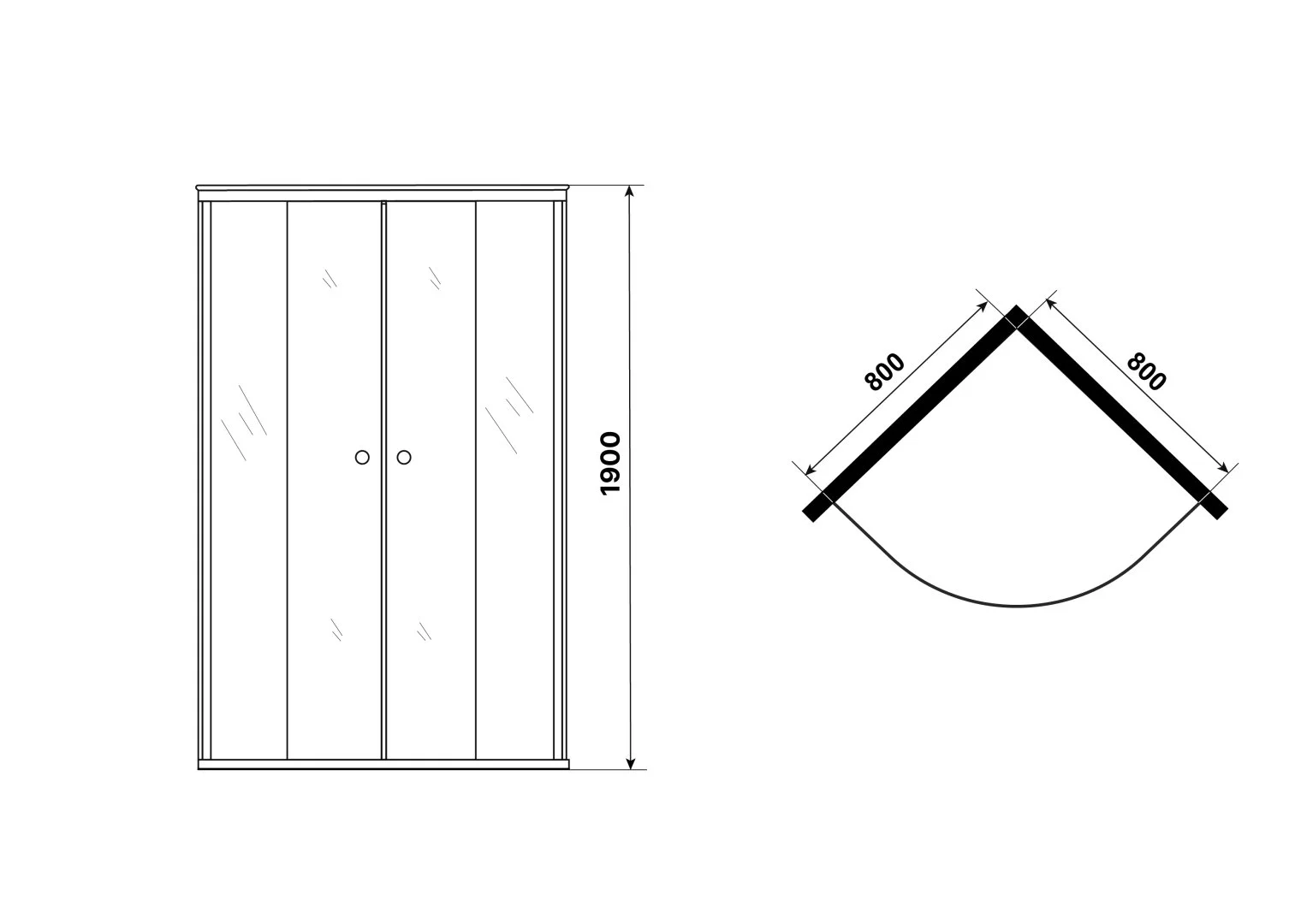 Душевой уголок Niagara Eco NG-1003-14T (80x80x190) четверть круга, раздвиж, профиль черный, стекло тонированное (4мм)