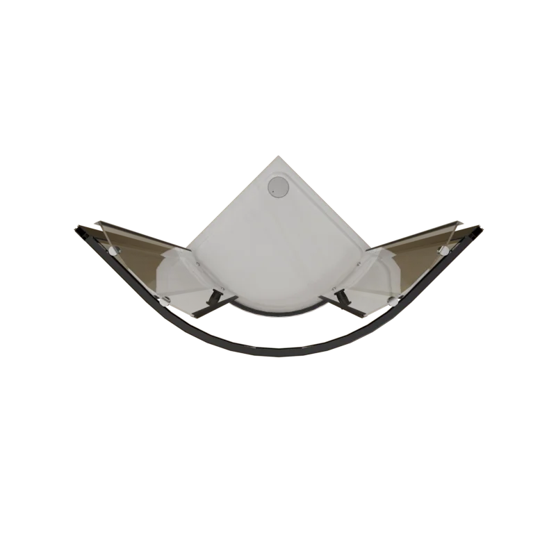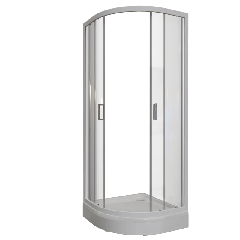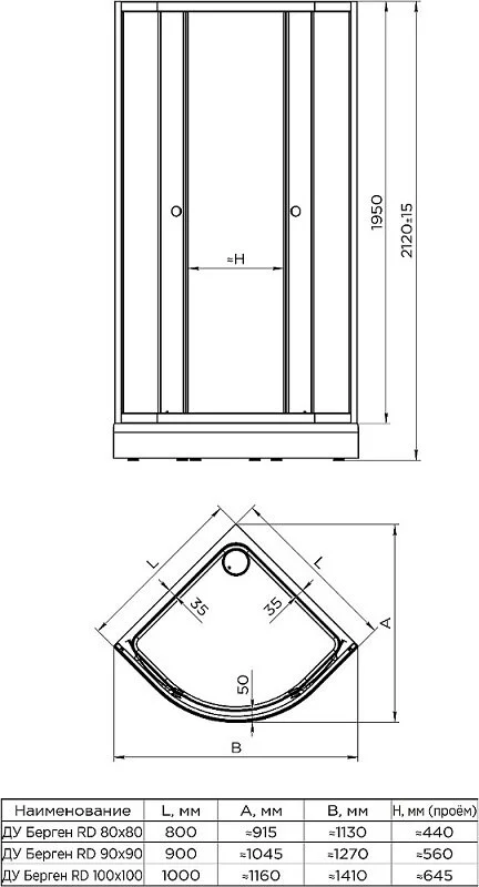Душевой угол «Берген RD» состоит из крепкого акрилового поддона на металлической раме-подставке и закаленных прозрачных стеклянных шторок толщиной 6 мм.