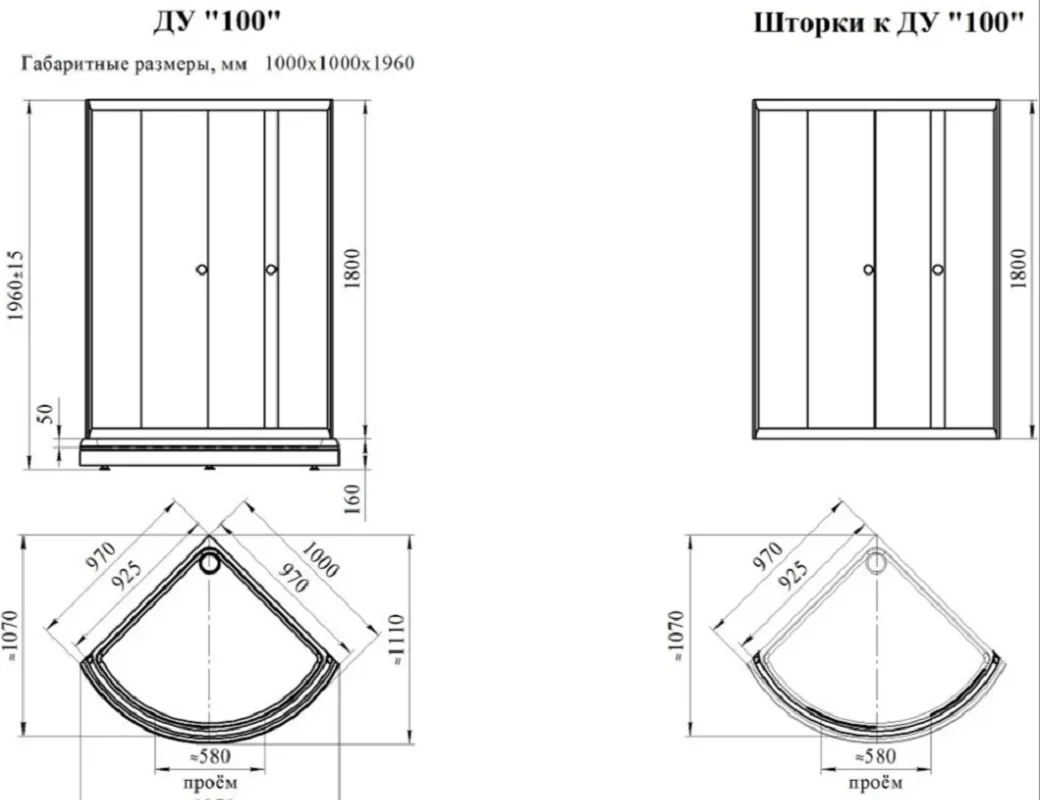 Душевой уголок Radomir Найт 100 1-09-6-0-0-0031 радиальный, стекла матовые, профиль черный