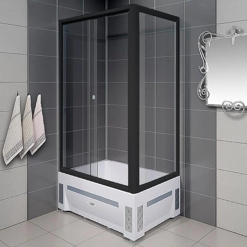 Душевой уголок Radomir Верчелли 1-03-6-1-0-0130 высокий поддон, левый, стекло прозрачное, поддон с каркасом и сифоном, профиль черный