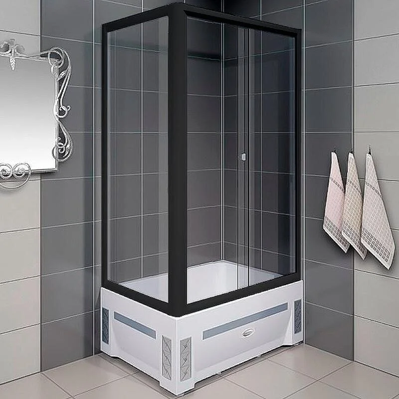 Душевой уголок Radomir Верчелли 1-03-6-2-0-0130 высокий поддон, правый, стекло прозрачное, поддон с каркасом и сифоном, профиль черный