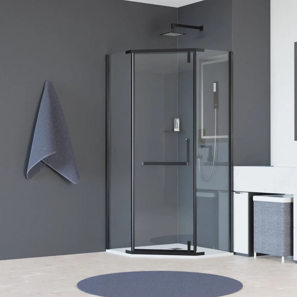 Стекло в душевом угле имеет матовое-сатинатное покрытие, что не только придает элегантный вид данному продукту, но и защищает от нежелательных отпечатков пальцев и водных разводов. Цвет профиля черный, что наряду с нержавеющей сталью s304 придает душевому углу изысканный и современный вид.