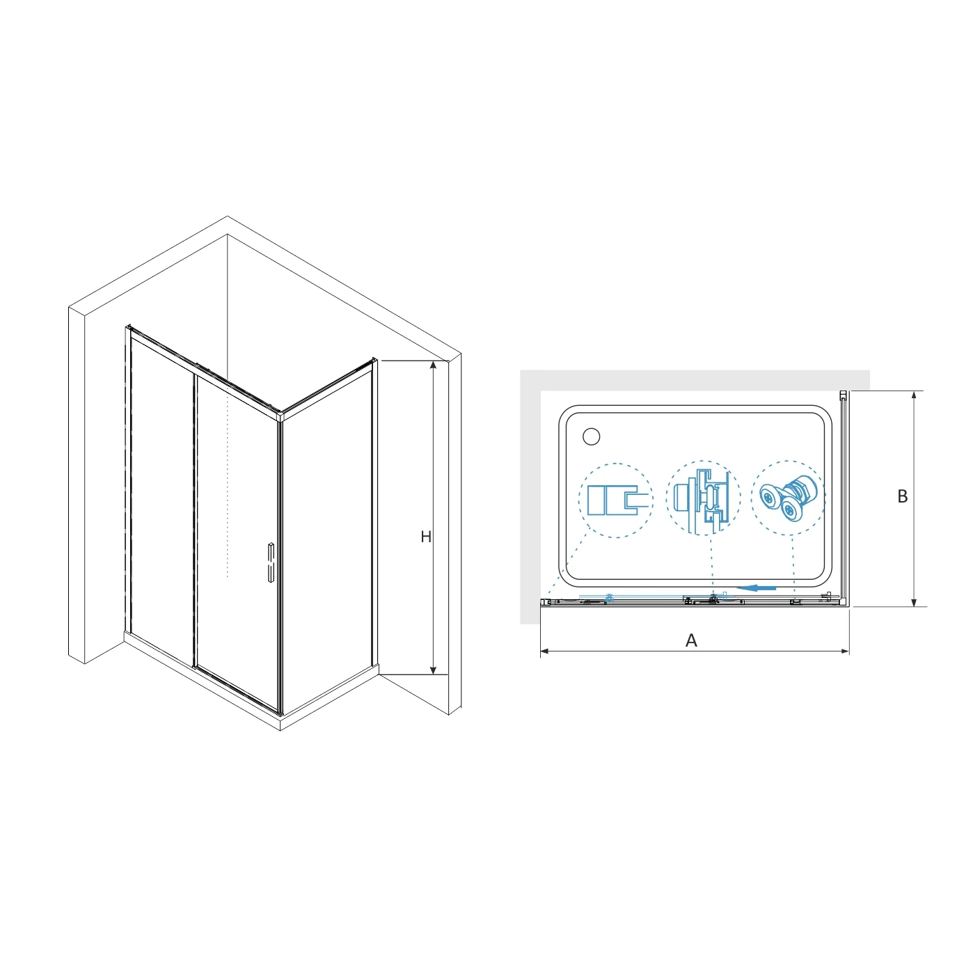 Конструкция дверей душевого уголка раздвижная, что обеспечивает доступность и удобство при использовании. Класс герметичности уголка составляет 2, что позволяет предотвратить проникновение воды за пределы душевой зоны.