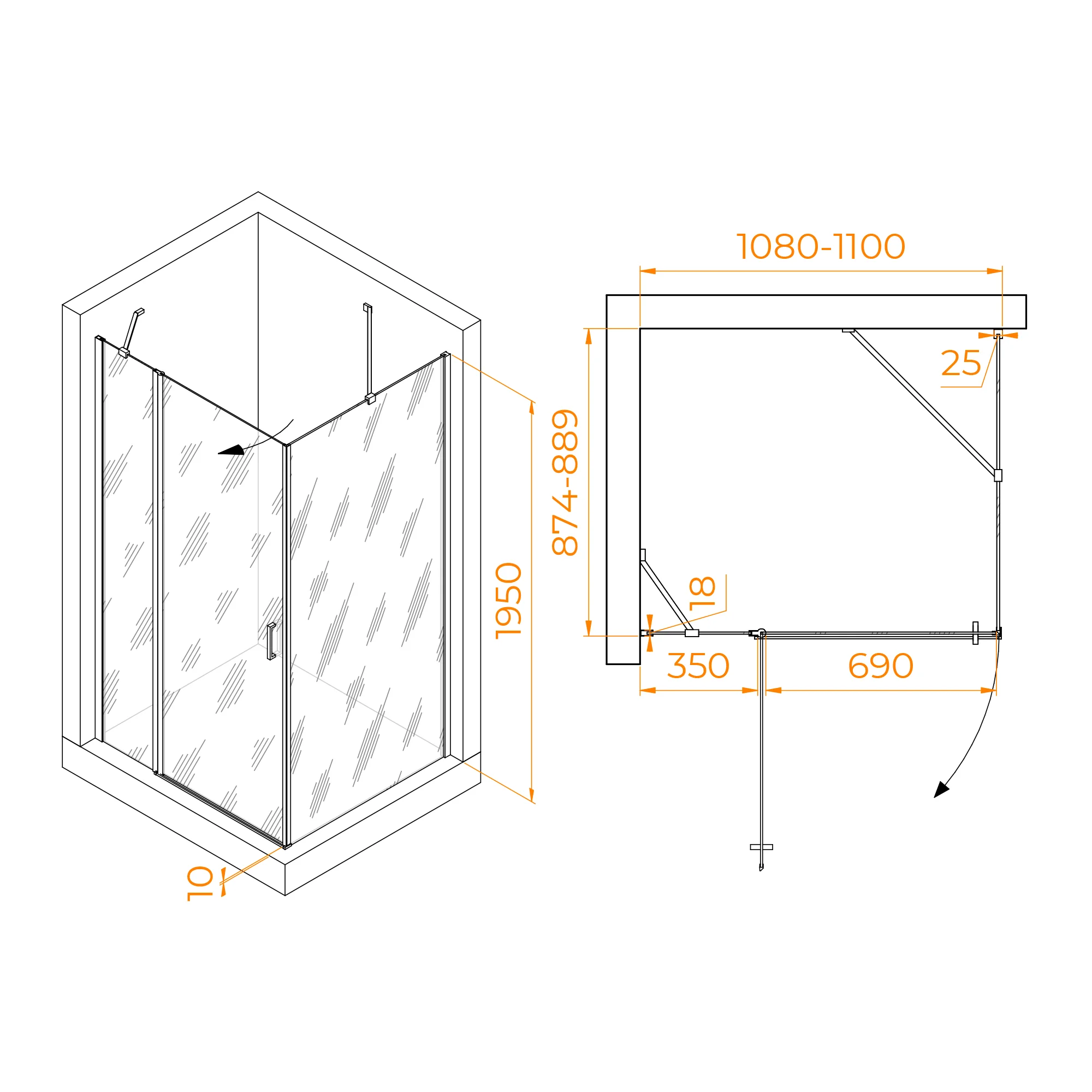 Душевой уголок RGW LE-044 состоит из душевой двери RGW LE-004 и боковой панели RGW Z-14. Установка боковой стенки со стороны открытия двери. В комплекте нижняя пороговая планка. Установка модели универсальная.